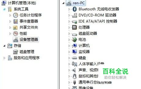 然后进入计算机管理,点击左边的“设备管理”,如下图