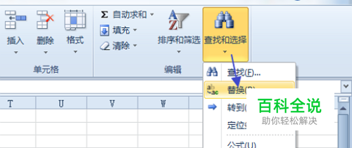 先点击excel2010开始选项卡中的“查找和选择--替换”。打开替换界面。 (也可以按键盘的“Ctrl+H”键打开替换界面。)