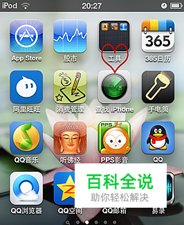 找到苹果自带的固定程序“工具”,如图红心标注处,点击打开,找到里面的“录音机”。