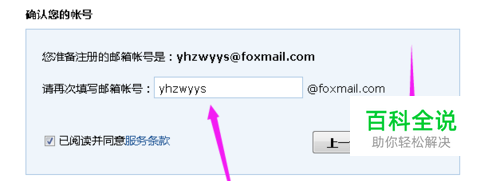 重新组合下字母,这下没有重复,可以点击下一步了,在这个框里输入刚才申请的英文字母,再次确认,然后我们点击确定,然后弹出个画面,提示你已经成功注册了新邮箱。