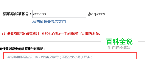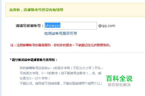 下面有注册英文邮箱的一些要求,大家可以看看,我们输入好想要的英文字母,然后点击下检测是否可用,和别人重复就不能用了。