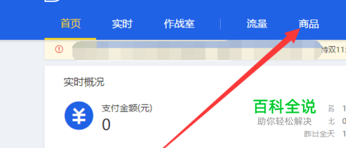 进入生意参谋后,点击顶部菜单“商品”项。