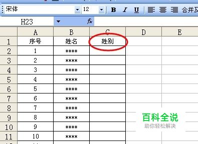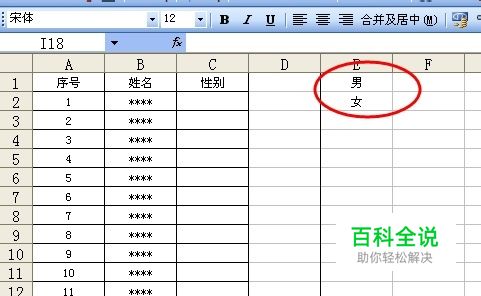 我们建立一个电子表格,其中,性别一栏需要填写:男或女。