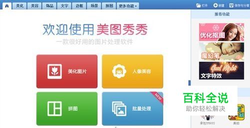 找到电脑美图秀秀,打开后如图所示,选择美化图片。