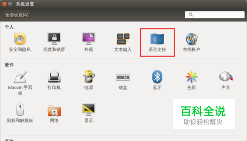 2、进入语言支持 点击 系统设置 中的 语言支持