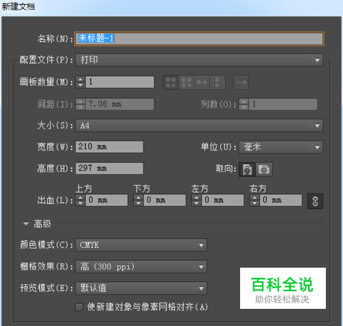 打开AI软件,新建一个文档,大小自定,单击确定按钮