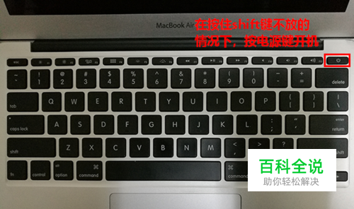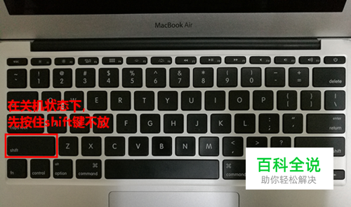 首先,在关机状态下,手指按住键盘上的 shift 键不放。