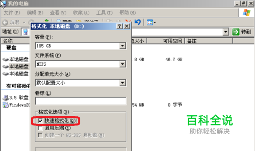 2、出图格式化本地磁盘后,单击快速格式化-开始。