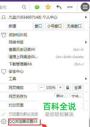 进入QQ浏览器,点击右上方的“菜单”,在打开下拉菜单中找到“QQ浏览器设置”,并点击打开