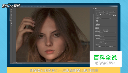 依次点击滤镜-液化,选择左边第一个工具进行瘦脸,选择膨胀工具调整眼睛。
