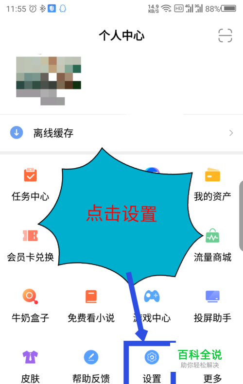 打开我的界面后,在软件的最下面有个设置,点击设置选项。如图所示