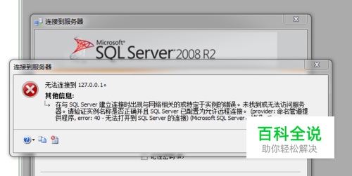 运行CMD,telnet 127.0.0.1 1433,得到结果是连接失败。 关闭防火墙再测试,如果关了正常了说明是防火墙的问题,这个就不多说了。如果关了防火墙依然连接失败请继续往下看。