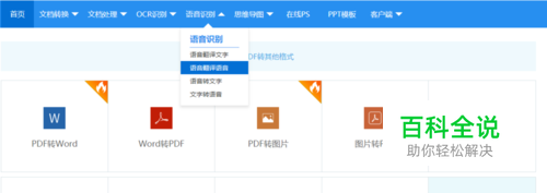 语音在线翻译成语音可以直接进入在线中翻译,点击导航栏中的语音识别,进入到语音翻译语音中;