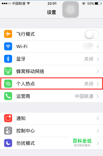 点开手机的【个人热点】按钮,进入界面