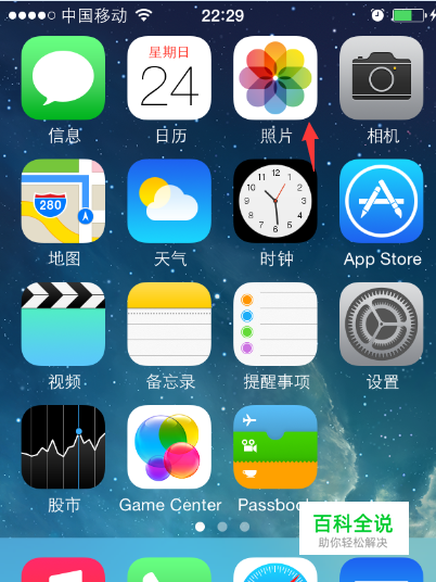 当我们的iPhone6提示储存空间不足时,在手机上找到“照片”一项。