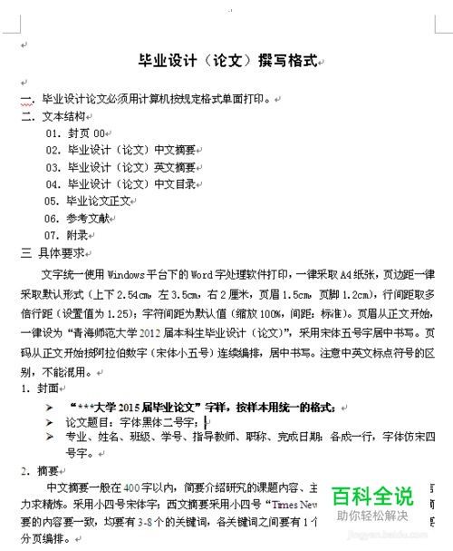 第一步:看格式 每个学校的论文格式都有不同的要求!导师都会发给同学们,让同学们按照要求来排版论文!或者会给个住届毕业生的论文章让同学们参照格式! 比如下图之类的格式: