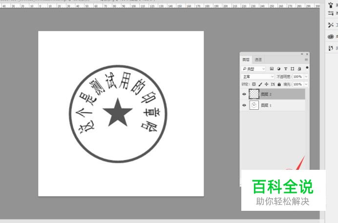 更改当前图层的类型为颜色,这时候,黑白印章就变成红色的了