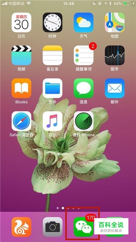 首先在我们的手机桌面上找到微信并点击它,如下图所示。