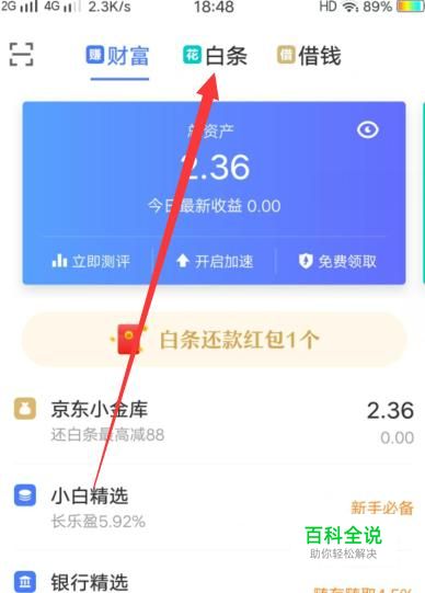 进入之后,点击“白条”,进入下一页面,如图所示。