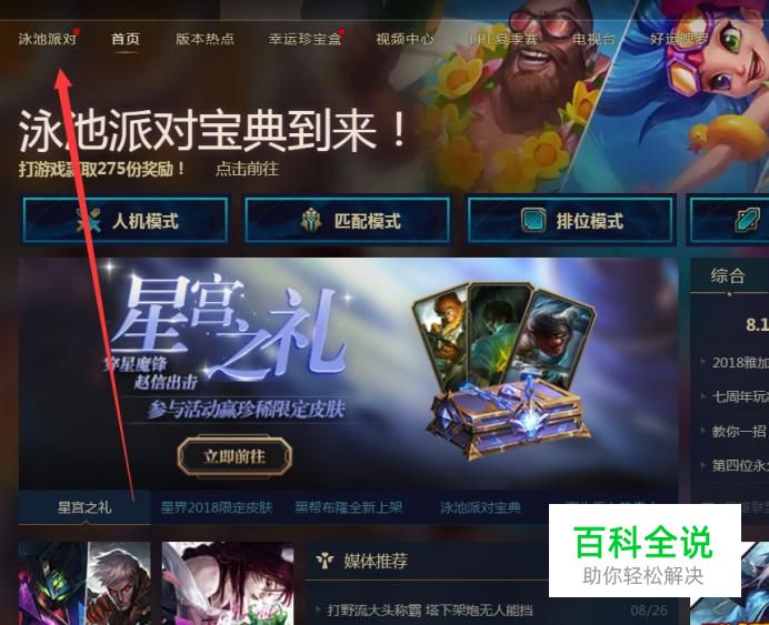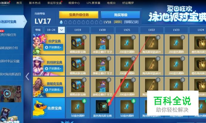 然后找到泳池派对,然后点开页面,之后你会看到有升级的任务,当前我是18级,下面找到传送门,如下图,
