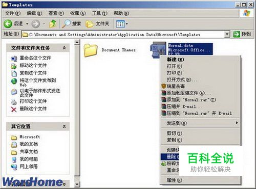 第1步,关闭所有的Word2007文档窗口,打开文件夹\Documents and Settings\Administrator\Application Data\Microsoft\Templates。找到并删除Normal.dotm模板文件,如图2008110412所示。 图2008110412 删除Normal.dotm模板文件