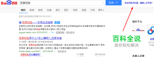 打开百度,随便搜索,在搜索框的右侧就会有爸妈浏览器,点击它,如图所示。