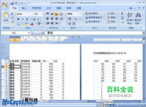 第1步,打开Excel2007工作表窗口,单击右下方的“页面布局”按钮,切换到“页面布局”视图,如图2009063008所示。 图2009063008 单击“页面布局”按钮