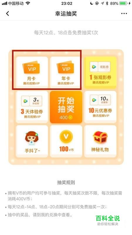 你也可以点击幸运抽奖,通过消耗一定数量的V币也是有机会获得腾讯视频会员的。你学会了吗?赶快动手试一试吧。