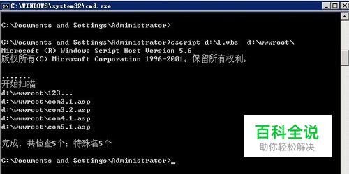 下载后直接打开开始-运行-输入cmd,然后如图所示输入:cscript d:1.vbs d:wwwrootftp名 然后按回车键即可。(后面d:wwwrootftp名是实际需要扫描的路径)