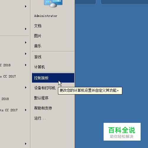 在电脑左下角,点击开始,弹出面板,再点:控制面板