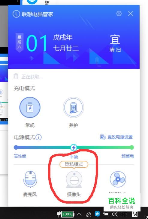 可能是我们在联想电脑管家电源管理关闭了摄像头