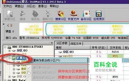 保存好后,再右键点击左侧的“扩展分区”,然后选择“重新加载当前分区”。