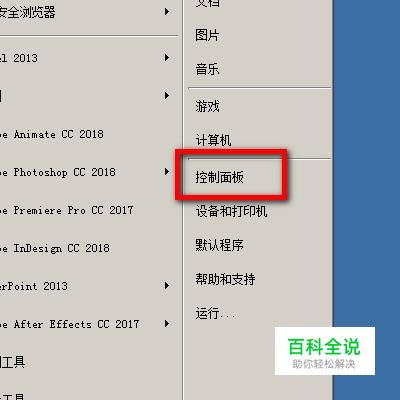 首先,我们点击电脑左下角的开始按钮。弹出的界面中再点:控制面板