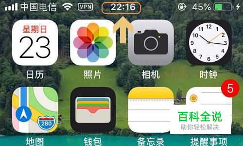 首先我们打开苹果手机,屏幕最上方就会显示目前的时间,比如小编发布这篇指南的时间是晚上十点十六分,那么显示的时间就是22:16,如图所示...