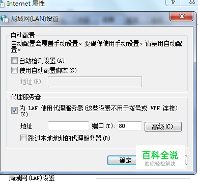 点击其中的“局域网设置”按钮,勾选“为LAN使用代理服务器”,然后在地址栏里输入代理服务器的IP地址。
