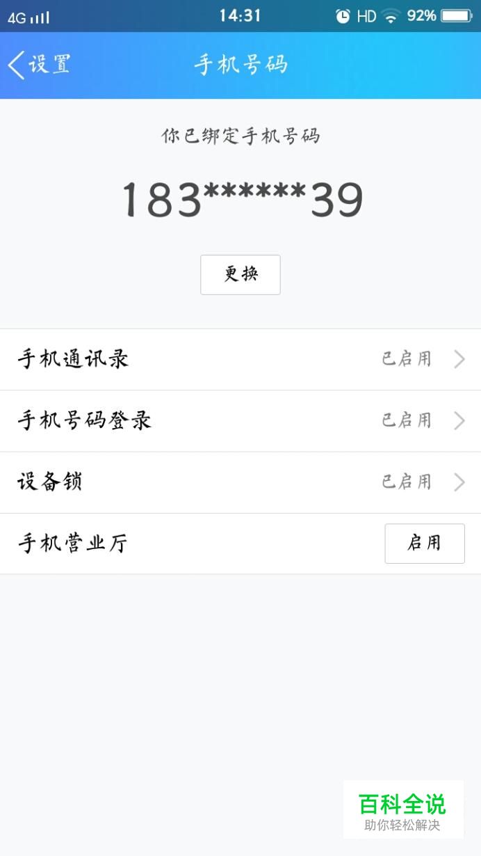 设置界面里面可以看到“手机号码”一栏,点击进入