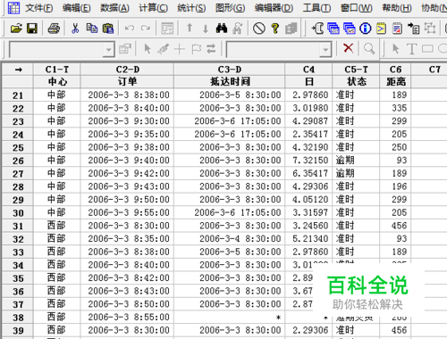 打开minitab15,新建一个数据表,将所需要分析的数据放入数据表中。此处用出货中心数据资源进行管理为例子来说明,因此分析出的直方图将会显示各出货中心的数据重叠情况。