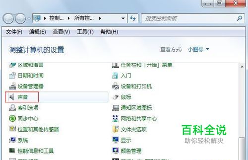 或许有些人的电脑隐藏了喇叭图标,看不到,没关系,也可以在控制面板中点击声音选项。