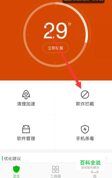 进入之后,点击“欺诈拦截”,进入下一页面,如图所示。
