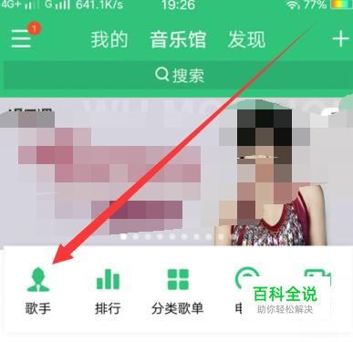 在“歌手”,进入歌手页面之后,找到自己关注的歌手,点击并进入,如图所示。