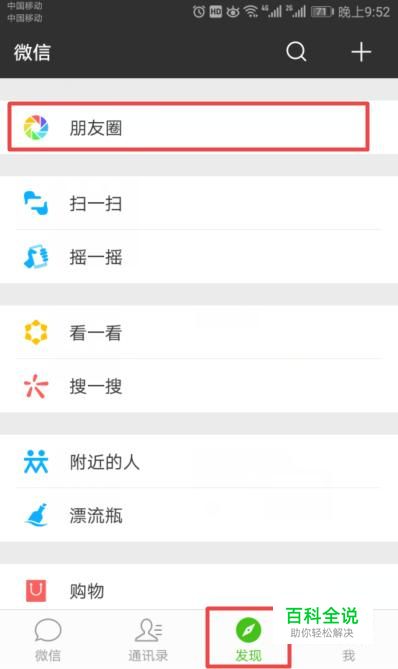 首先,我们打开我们的微信,然后我们点击发现,之后我们点击朋友圈;
