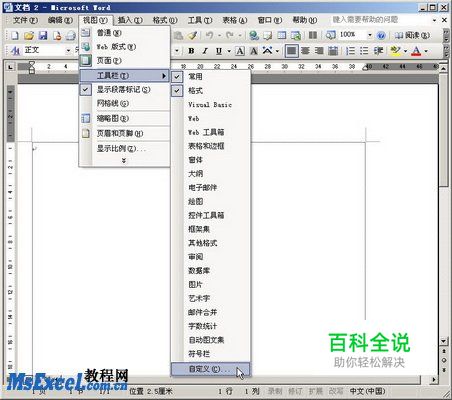 第1步,打开Excel2003窗口,依次单击“视图”→“工具栏”→“自定义”菜单命令,如图2009051402所示。 图2009051402 单击“自定义”菜单命令