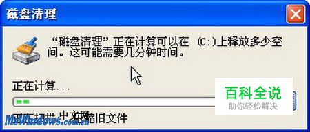 第2步,在打开的“磁盘清理”对话框中,“磁盘清理”工具开始计算在选定的磁盘分区中可以释放的空间大小,如图2010040521所示。 图2010040521 计算释放空间