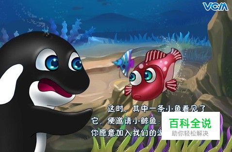 一条小鱼邀请小鲸鱼加入它们的游戏。