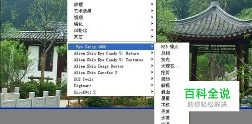 接着也可以用【玻璃】滤镜,进行调整,鼠标左键单击【滤镜】>>【Eye Candy】>>【玻璃】,如下图所示。