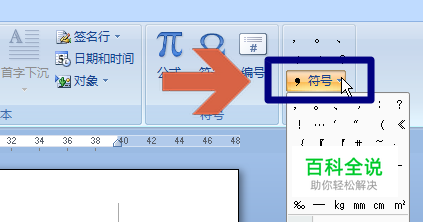 点击选项卡最右侧的“符号”。点击后会弹出一个菜单。