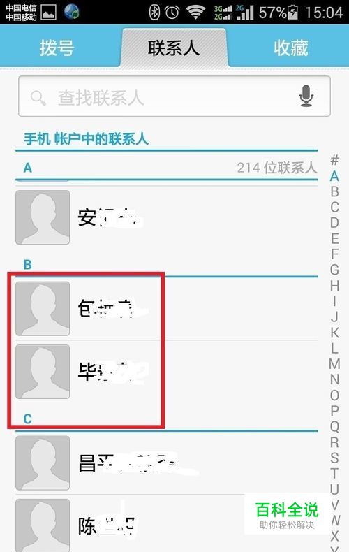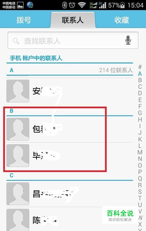 效果图,发现B开头的联系人都显示出来啦,而且可以看出他们所存储的位置