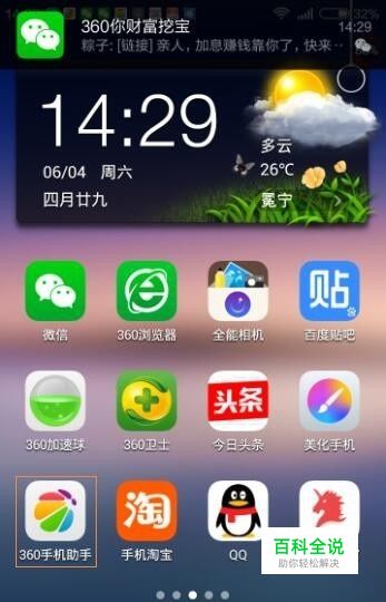 打开360手机助手APP:拿出智能手机,打开360手机助手APP(用手指点一下即可打开)(如图所示)。附:360手机助手APP是一个应用市场商店类的APP,所有的手机安装软件都可以在里面下载并有安全认证哦!