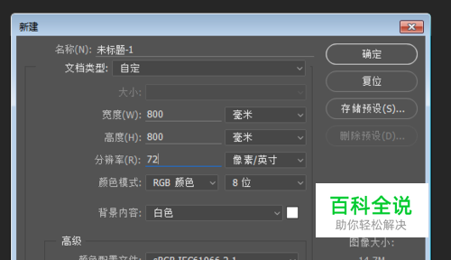 二、新建一个800*800像素,分辨率72