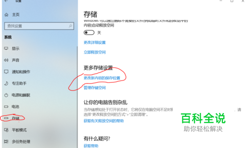 进入“存储”界面后,在右侧“更多存储设置”栏目下,选择“更改新内容的保存位置”